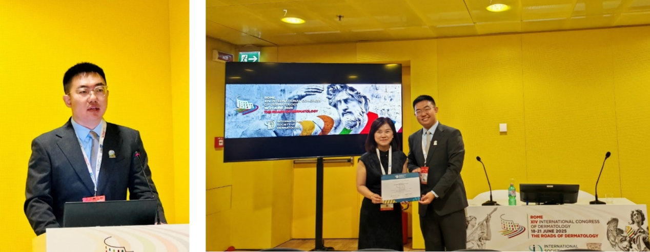 研究所青年骨干徐抑非医师,从全球各个国家和地区的候选者中脱颖而出,荣获2025 ISD全球教育奖(ISD GEA 2025),并在大会作口头发言,展示了团队在脂代谢关键易感基因与银屑病关联研究中的创新发现,为银屑病机制探索和临床干预提供了新靶点。